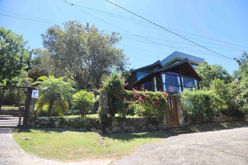 Linda casa na Silveira com vista para o mar, com 3 quartos sendo 1 suite, +1 banheiro, 1 dos quartos com ar condicionado, terreno todo cercado, tv sky, microondas, máquina de lavar roupas, churrasqueira, Internet wi-fi.