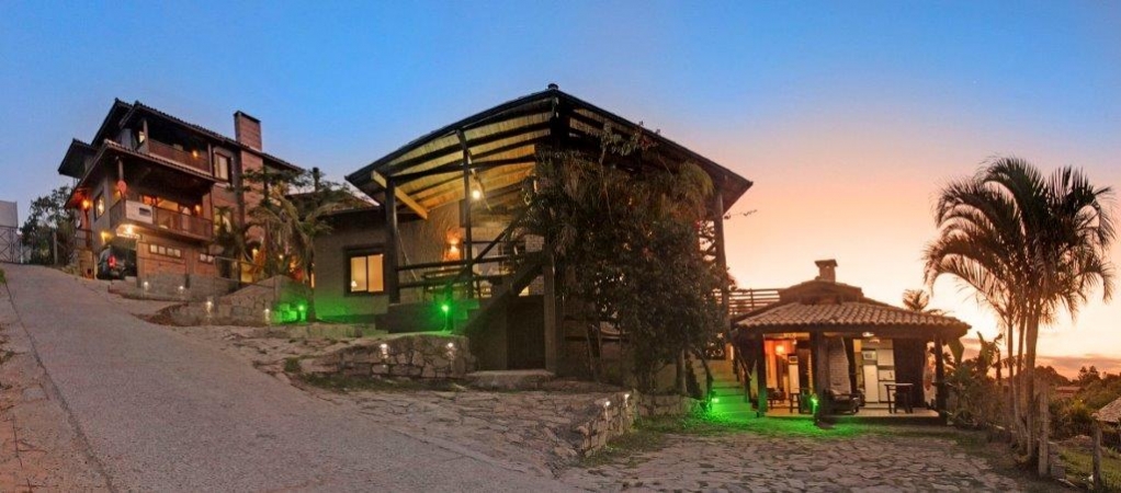 O fato de localizar-se no alto do morro e possuir somente sete bangalôs, permite um ambiente de tranqüilidade, sossego e segurança, já que o acesso fica restrito praticamente ao hóspede. A Pousada conta com quiosque, churrasqueira e fogão à lenha , piscina com deck de madeira com vista panorâmica para o vilarejo do Rosa e lagoa de Ibiraquera. Playground para crianças. Todos bangalôs possuem cofre ,cozinha completa com micro-ondas, cafeteira, torradeira, tostadeira, liquidificador. No quartos: ar condicionado Split e tv 32 led a cabo. Banheiro com super ducha e secador de cabelos. Internet wireless. Roupas de cama e banho. Serviço de camareira diário e estacionamento próprio.