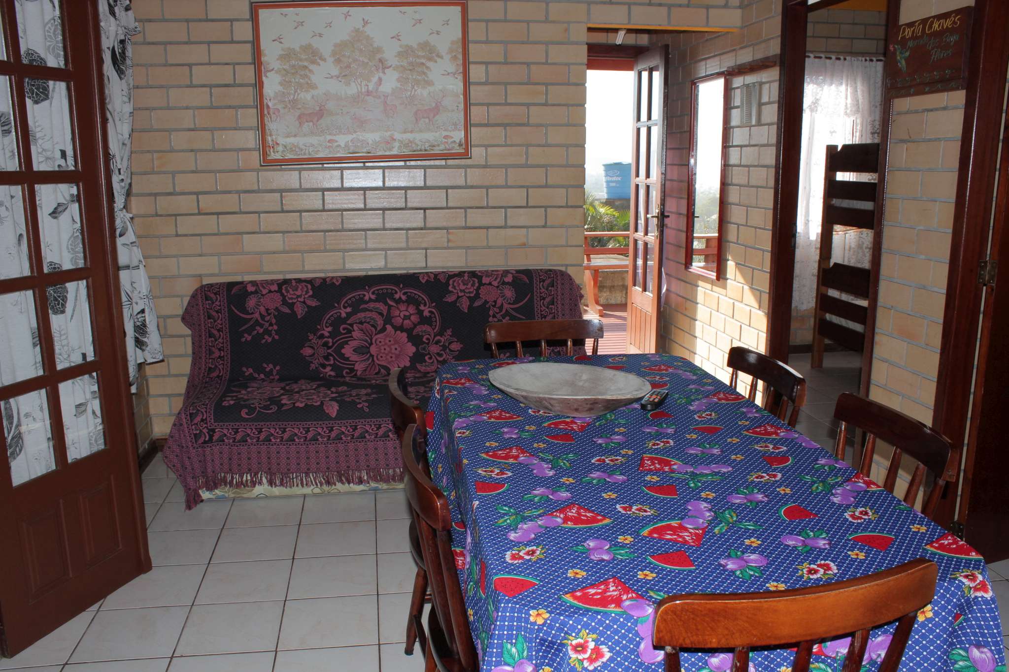 Casa 2 quartos para 6 pessoas, sendo 1 quarto 1 cama casal, 1 quarto 2 beliches, 1 banheiro, sala c/ sofá cama e TV, varanda c/ rede, ventiladores de teto nos quartos, churrasqueira, cozinha completa, com balcão na cozinha, divide terreno com as referências 577,578 e 580, estacionamento privado, terreno cercado, à 300m da Praia e 700m dos bares. Casa piso baixo da 580. Opcional ar condicionado: R$500,00 no pacote