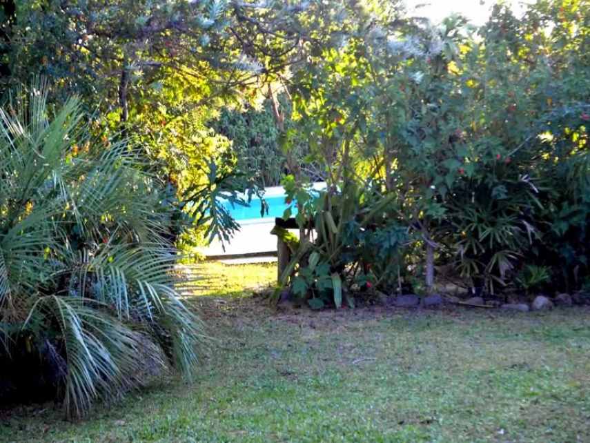 Casa em condomínio com piscina, quiosque com churrasqueira, wifi e localizada a 200m do centrinho da Praia do Rosa. Casa mobiliada com capacidade para até 5 pessoas, possui com 2 quartos, banheiro, cozinha completa, sala com TV e ar condicionado.