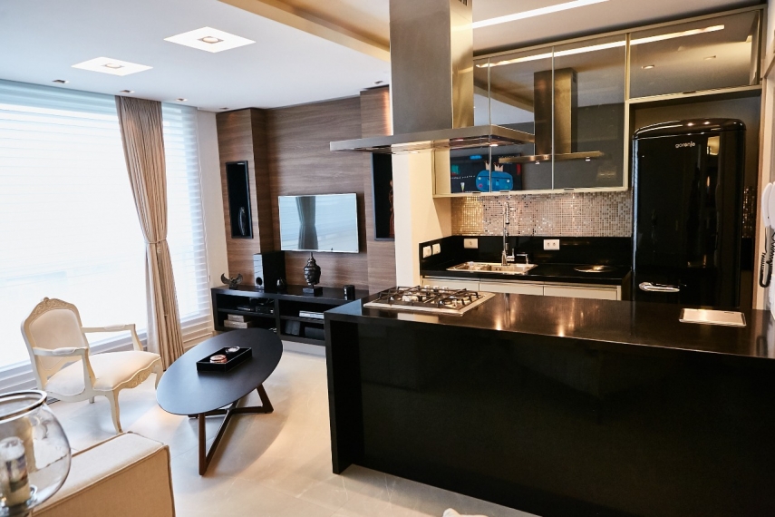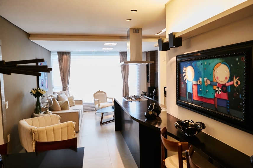 Apartamento de ALTO PADRÃO na praia de JURERÊ. Com 1 dormitório, para casais ou solteiros exigentes, de gosto REFINADO. 102m2 de requinte e sofisticação, com apenas 4 anos de construção. Ambientes planejados, com eletrodomésticos e eletrônicos de ÚLTIMA GERAÇÃO. Condomínio de alto padrão, com poucos apartamentos. Oportunidade para clientes SELETOS, no destino turístico mais EXCLUSIVO de Santa Catarina. Condomínio SEGURO, com porteiro e acesso controlado. 2 VAGAS de estacionamento coberto. Piscina com deck e ambiente social. Apartamento com decoração sofisticada, com móveis SACCARO, porcelanato PORTOBELLO, rebaixamento de teto em gesso acartonado e projeto luminotécnico. Todos os ambientes climatizados por ar-condicionados. Corredores espelhados e paredes com tonalidades para maior profundidade. Cozinha planejada com balcão negro em silistone, pastilhas douradas sobre a pia gourmet com torneira gourmet de monocomando, fogão de quatro bocas a gás com coifa de ilha em alumínio, forno embutido, armários planejados em vidro semi-transparente com espelhamento dourado, refrigerador Gorenje Retrô. Área de serviço anexa a cozinha, com balcão em silistone, nichos em MDF e máquina de lavar em aço escovado com abertura frontal. Sala de jantar com mesa em MDF negro, quatro cadeiras acolchoadas. Sala de estar com rack planejado em MDF, iluminação embutida, com suporte para televisor de até 50"; poltronas acolchoadas com estilo vitoriano e vintage; sofá de dois lugares com regulagem de encosto; e mesa de centro oval em MDF preto. Quarto de casal com cama King Size, cabeceira acolchoada, guarda-roupas planejado com aberturas em vidro branco, piso de porcelanato retificado de textura de madeira, ampla abertura com persianas. Suíte com banheira de imersão com torneira e ducha de monocomando; revestimento de parede em porcelanato de textura perla com brilho, piso em porcelanato grafite; balcão planejado em MDF e silistone branco com pia com monocomando, armário e expositores de toalhas. Closet anexo, com piso laminado de textura de madeira, portas em vidro brancos, duas poltronas estofadas e ampla abertura com persiana. Banheiro social com boxe em vidro temperado, ducha com monocomando, revestimento de paredes em porcelanato Liverpool em amarração, piso em porcelanato grafite, balcão planejado em silistone cinza com expositores de toalhas, torneira com monocomando. Decoração atual, quadros assinados por artistas modernos. Proprietário aceita PERMUTA por imóvel na região de Garopaba, até o valor deste anúncio.