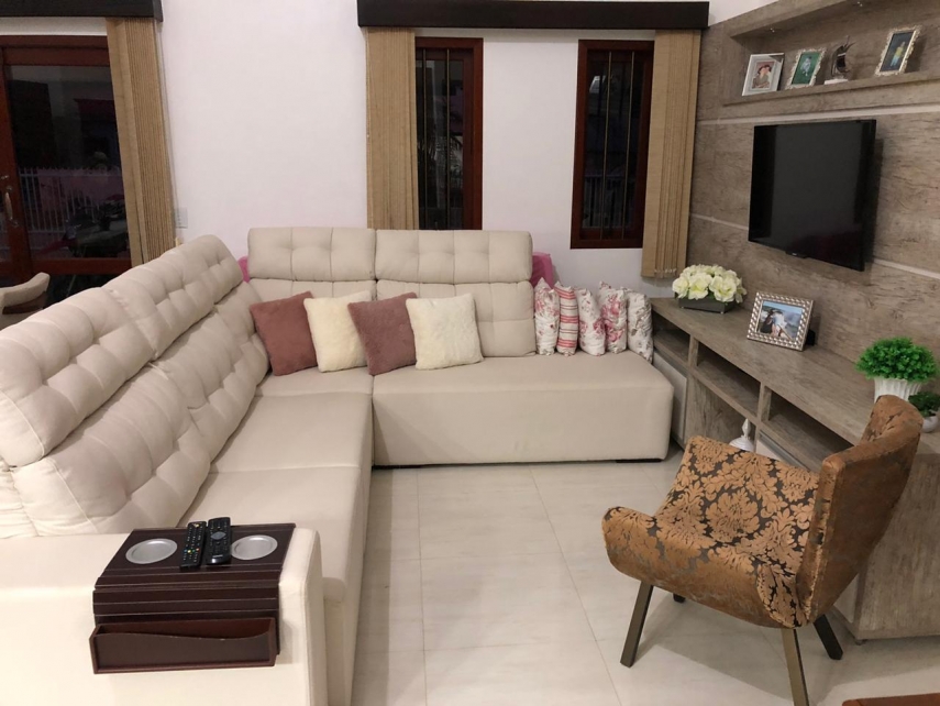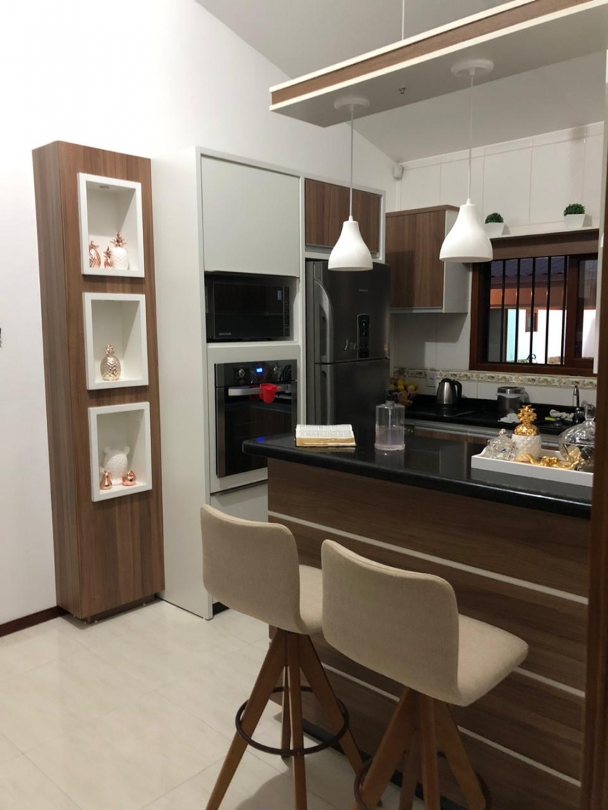 450,00m², cerca de 150,00m² de área construída. 4 dormitórios, sendo 1 suíte de casal com móveis planejados, 2 dormitórios com móveis planejados e banheiro social, 1 suíte em edícula. Cozinha, sala de estar e jantar com móveis planejados. Edícula aos fundos, com 1 suíte, churrasqueira, forno para pizzas e pães. Gagarem coberta e portão eletrônico. Acabamento em alto-padrão, com gesso acartonado, porcelanato, móveis planejados em MDF e aberturas em madeiras nobres. Propriedade com Escritura Pública e Matrícula no Registro de Imóveis, com possibilidade de financiamento junto às instituições financeiras. Visita sob agendamento.